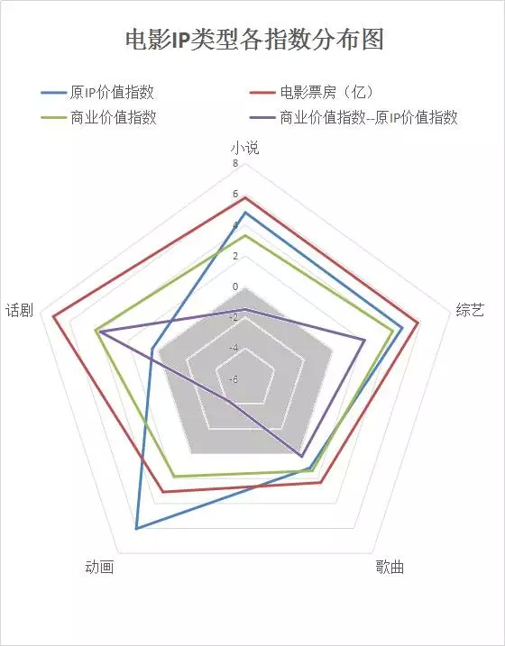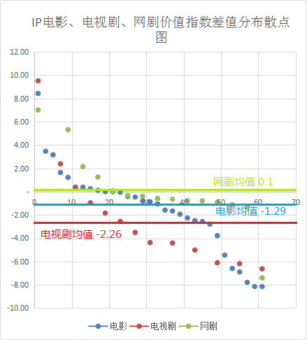 不过从三者在商业价值指数和IP价值指数之差的方差上来看:
