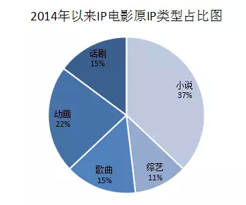 另外娱乐资本论将这30部IP电影按原IP类型进行分类,除了小说,话剧、动画、综艺和歌曲也越来越成为电影的IP来源,小说IP的主导地位下降。