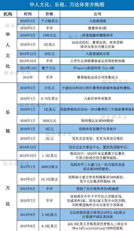 下图为娱乐资本论整理的华人文化、乐视、万达
