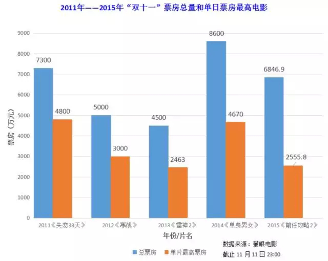 与淘宝双十一购物狂欢节不断打破的纪录相比,光棍节当天6000万的电影票房甚至可以忽略不计。