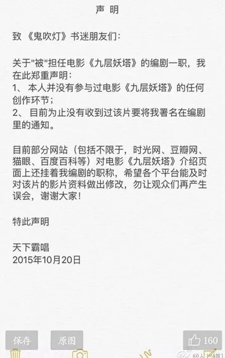 1.天下霸唱方否认担任《九层妖塔》编剧,称“忍很久”