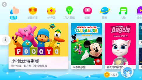 值得指出的是,在内容分类中,可以一眼看到靠近左上角的动画明星一栏。徐昊介绍说,动画明星导航栏非常受小孩子的欢迎,因为几乎每个小孩子都会有自己喜欢的动画明星,而且对很多动画明星都有深刻印象。