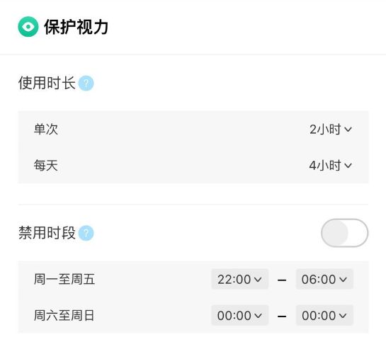 在单次使用时长和每天总时长都有相应的时长设置,上限分别是2小时和4小时。孩子的父母可以通过这种观看时长设置帮助孩子更好地管理时间,避免孩子沉溺于节目中,以期养成健康使用电子产品的好习惯。