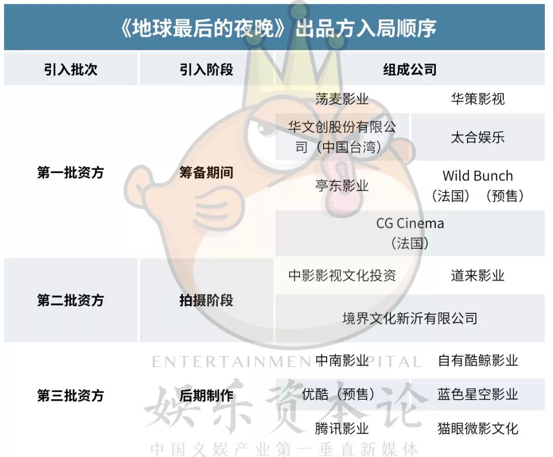 《地球》只好引入了最后一批资方,于是优酷、腾讯、猫眼、蓝色星空纷纷入局了。