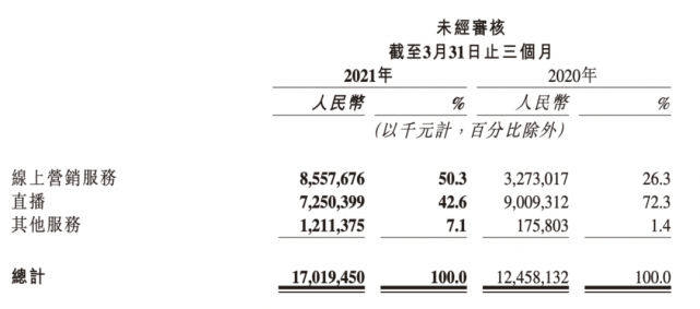 财报中解释,由于去年因为疫情影响,大众隔离在家,社交活动转移至线上造成去年第一季度直播用户增长。今年随着疫情的恢复,人们恢复正常的生活模式。去年第一季度快手直播月均付费用户为670万人,但今年减少为524万人。