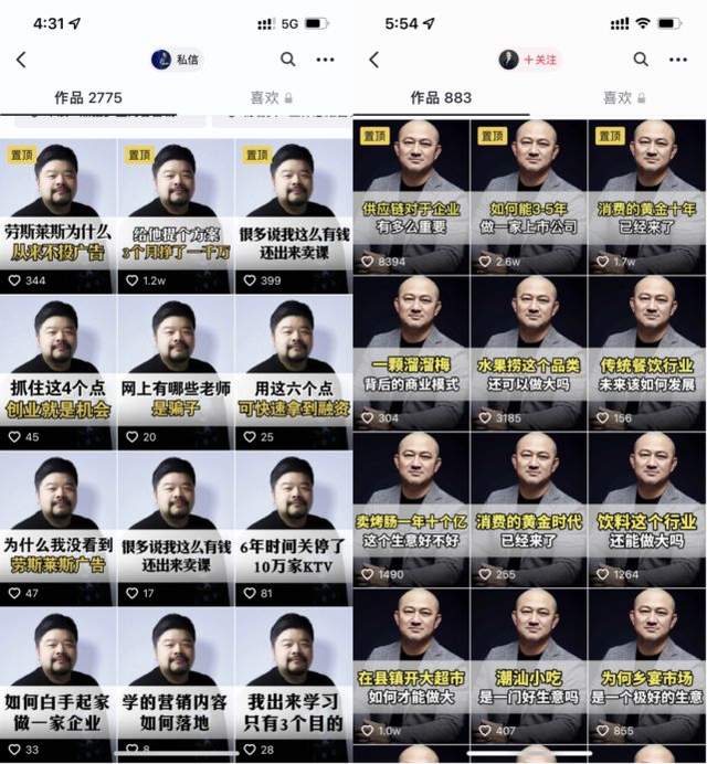 1.一张模版化的封面,由主讲人的大头照和一个“干货”问题组成;2.一段简短的解析或对谈,但会绕过核心答案不谈;3.一个典型的引流结尾,告诉观众自己多年的“创业心法”都在9.9元至199元不等的课程里,点击下方小黄车即可购买。