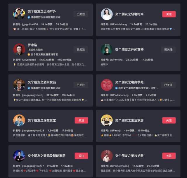 “交个朋友直播间和抖音的商业生态是一同成长起来的”,这是李亮对二者关系的定义,罗永浩本人的账号也在平台扶持下拿到了千万粉丝,迅速起量,但已经孵化了10个分品类账号的交个朋友,正在有意识地降低“含罗量”。