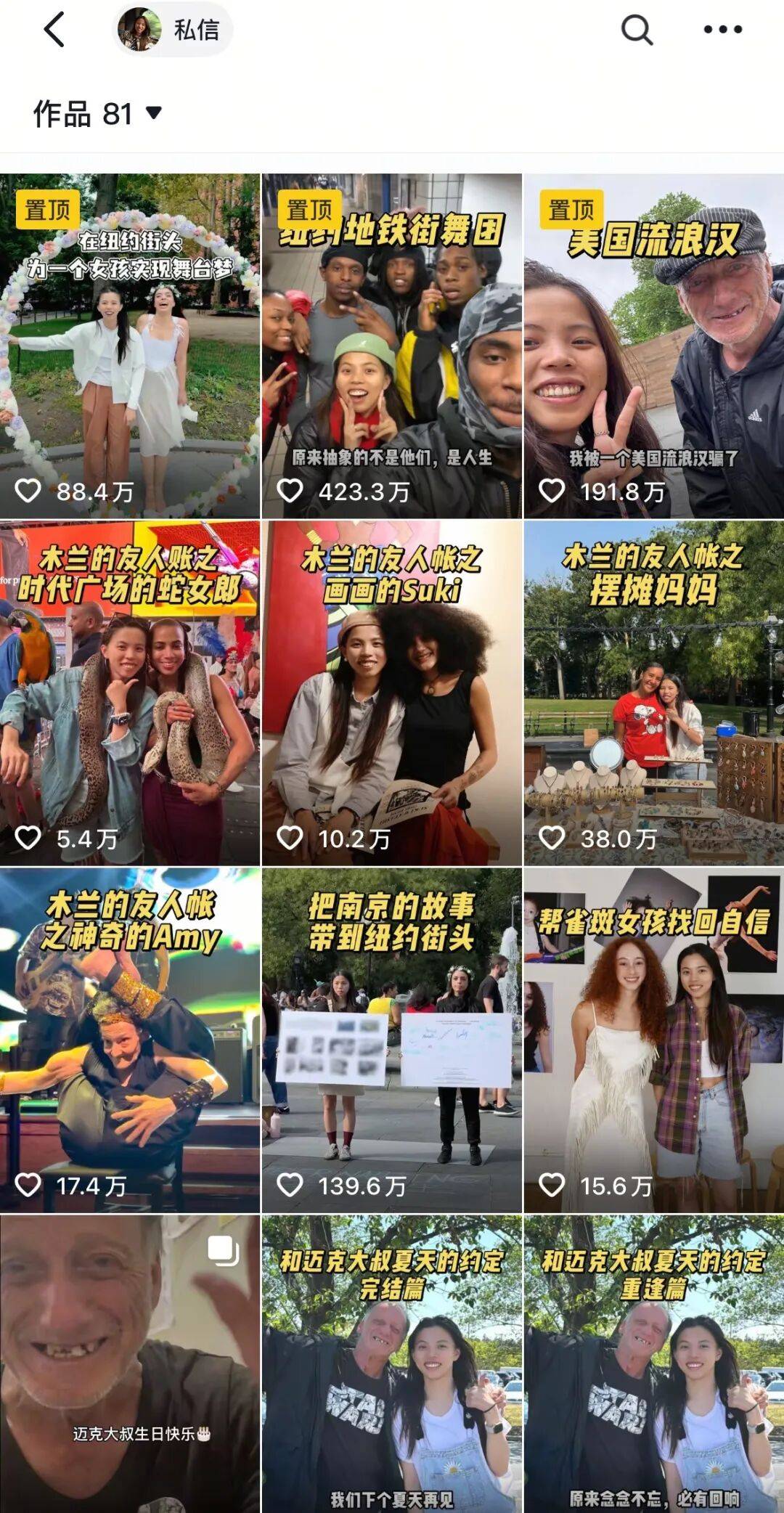 真实的情绪也是能触动用户的密码,前文提到的@北范南调记录的内容,以及@木兰来了记录的很多人物故事,正是因为背后的情绪共鸣,在抖音上打动、链接了很多陌生人。