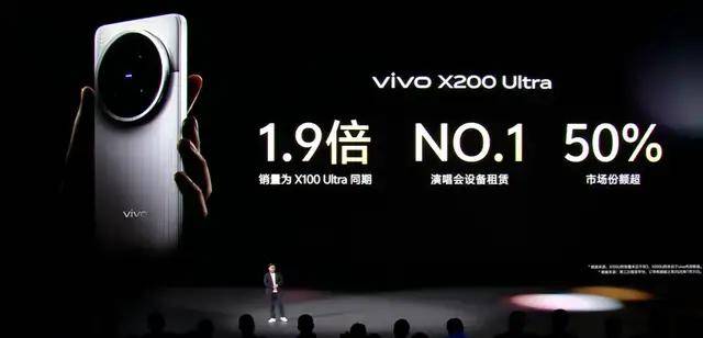 2025年8月举办的vivo Vision发布会暨影像盛典上,vivo副总裁、影像副总裁于猛对外表示,vivo X200 Ultra的同期销量为上代产品的1.9倍,在演唱会租赁市场的市占率超50%,连续五个月位列第一。次月,vivo再次强调,vivo X200 Ultra连续6个月位居演唱会租赁市场市占率第一。