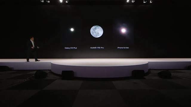 2019年3月,发布P30系列时,华为常务董事、终端BG董事长余承东花费大篇幅介绍该产品的长焦优势,宣称“三星的Galaxy拍不到银河,但是P30 Pro可以”。发布会现场,华为展示了华为P30 Pro、三星Galaxy S10 Plus以及iPhone XS Max拍摄的月亮样张,结果P30 Pro的清晰度更高。