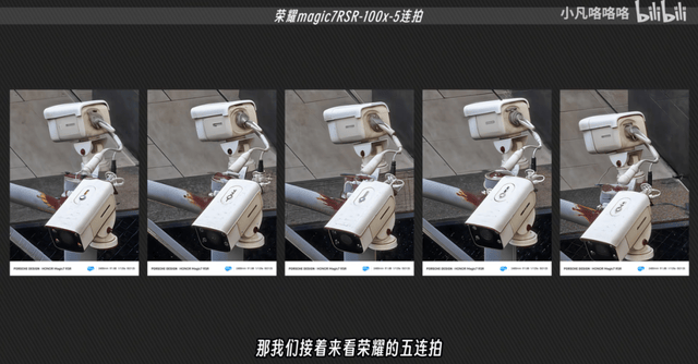 比如,2025年1月,B站UP主“小凡咯咯咯”在评测视频中,使用荣耀Magic7 RSR拉高到100倍变焦,前后五次拍摄同一个摄像头,结果五张照片中,摄像头接口的细节各不相同。