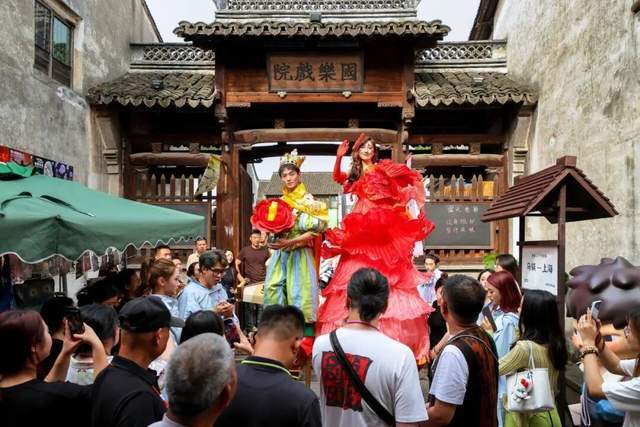 戏剧节期间,每一位进入乌镇的游客都能体验古镇嘉年华,在街头巷尾偶遇剧团“随地大小演”,看巨型人偶在街上巡游互动。