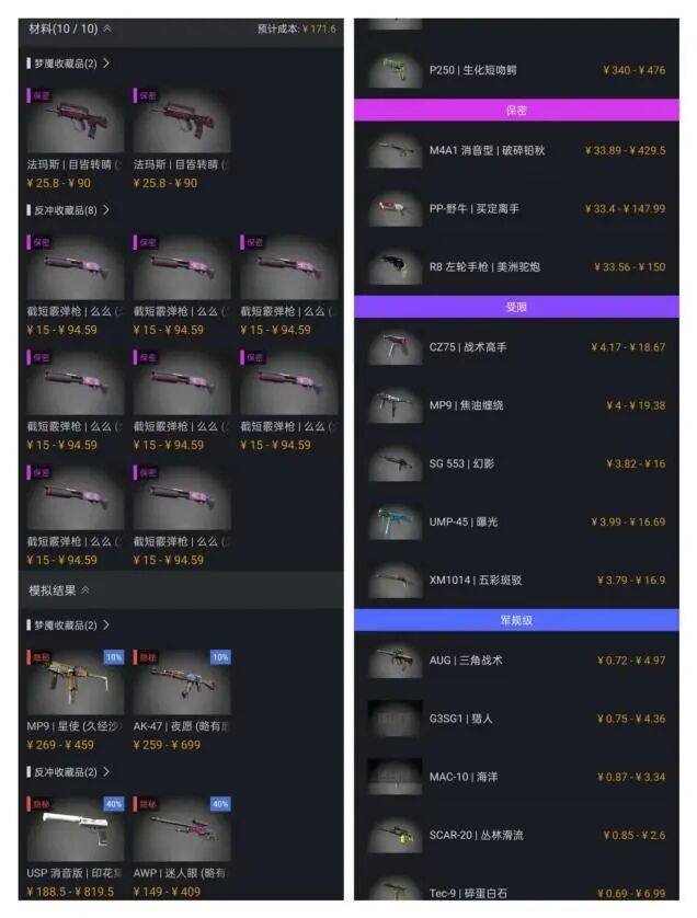 (汰换和开箱的产出示例,图源:网易Buff App)