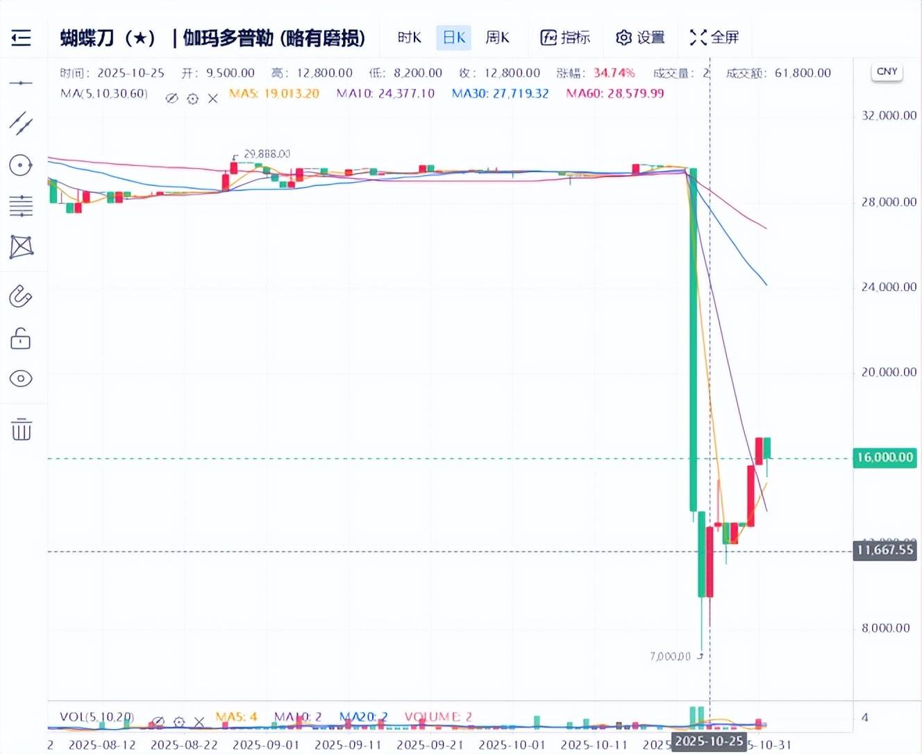 短短一句话。我盯着它,反复看了三遍。脑子里“嗡”的一声。玩了五年CS,我看着Valve对饰品系统修修补补,每一次市场的波动都像潮汐,涨上来了,迟早还会再退去。我几乎是下意识的打开了久违的Buff平台,那把曾让我魂牵梦萦的绿宝石蝴蝶刀,从曾经遥不可及的三万二高峰,笔直地向下俯冲,定格在一万出头。