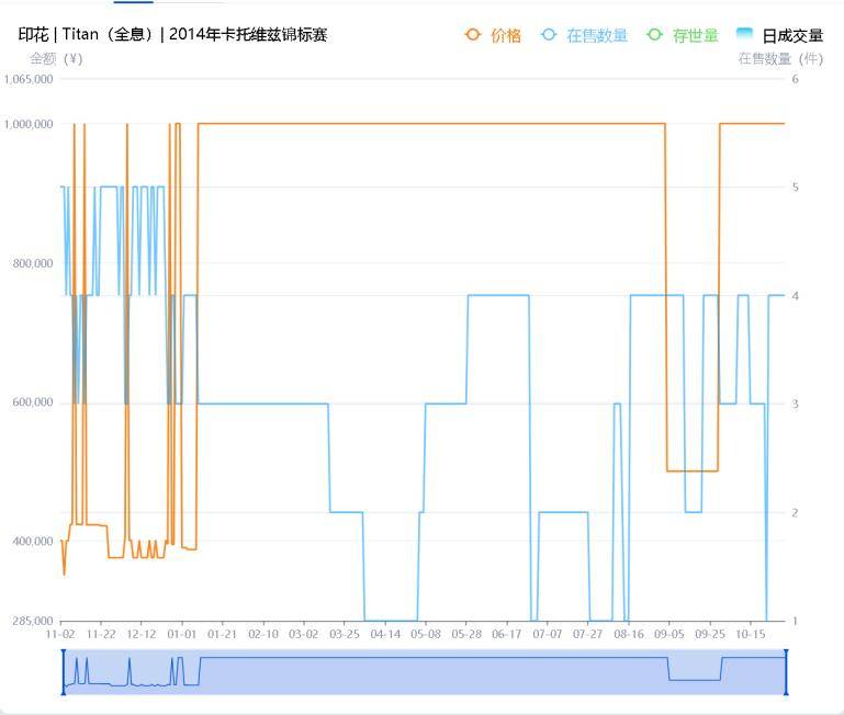 (印花“泰坦”的近一年价格走势图,图源:SteamDT)