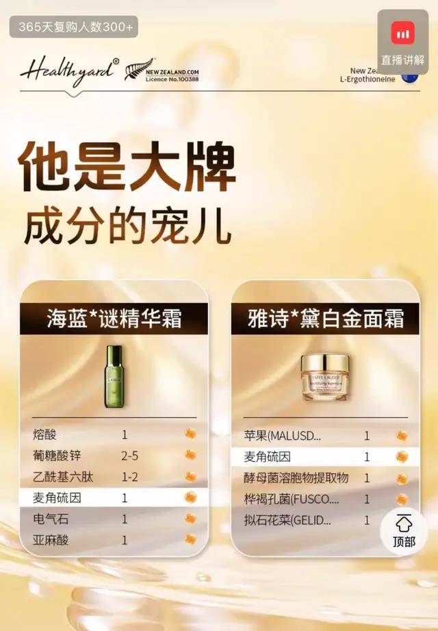 “研生之力的这个麦角硫因可以说是现在姐姐身边的娱乐圈、贵妇圈,最热门的成分”