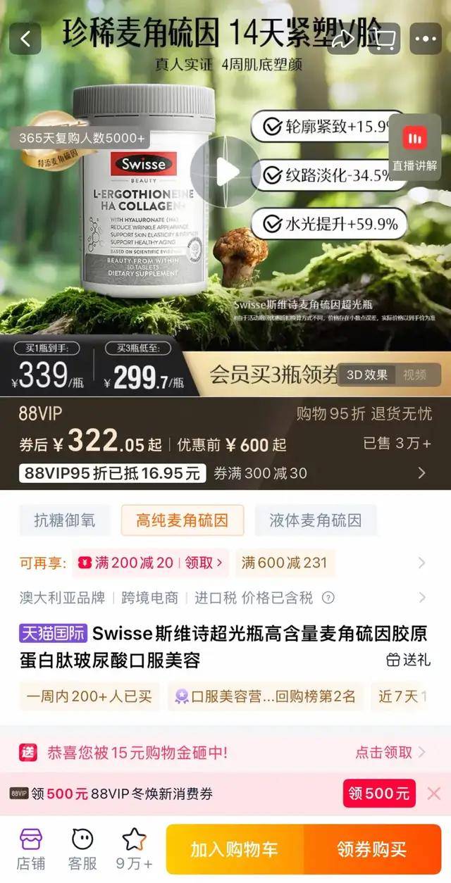 同时,品牌们也会同步配置24小时直播间,让被种草的消费者能丝滑找到下单路径。直播间的主播们也不甘示弱,除了拆解购买机制,还会丝滑地输出麦角硫因的作用机制、吸收率等,甚至还会以自己做背书,表示经常熬夜加班、爱吃多油多盐,亲测吃麦角硫因有效。
