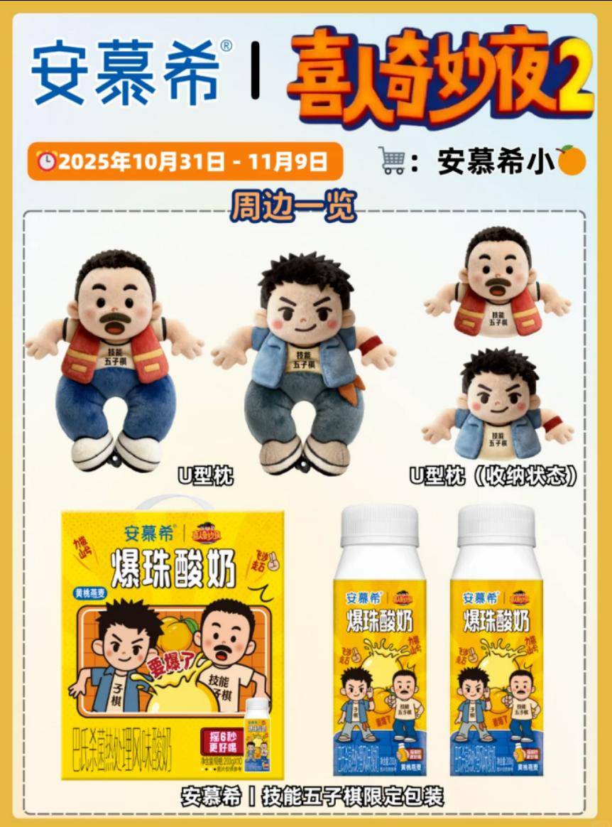 除了与喜人们进行TVC拍摄合作外,安慕希还通过发布系列喜人亲签、《技能五子棋》限定包装等,来吸引CP粉丝的互动,可谓是把粉丝经济研究的明明白白。安慕希与《技能五子棋》联动的周边产品,在社交媒体上引发了网友们的大量二创、晒图。