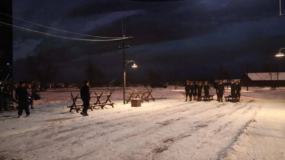 还有在哈尔滨实拍的部分需要和在棚里虚拍的气氛、质感和光感要完美衔接。比如从哈尔滨实景的行政楼里出来,走到内部道路,再走到街道上。内部道路、街道是虚拍,其他部分是实拍,天空的颜色和整个氛围要完全对得上。