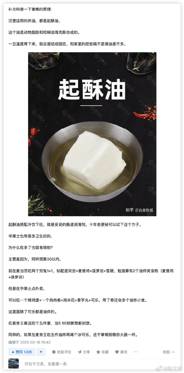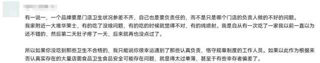 目前,网络上对此的解释一般分为两种:一类认为冰饮和炸物原本就对肠胃有负担,本质上是因为华莱士过于便宜,同样的价格下人会摄入更多的油炸食品。另一类则将原因归结于“店长的良心”——相比起避雷,更多人愿意分享自己吃过的干净门店。