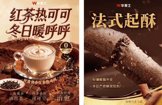 曾经支撑起华莱士快速扩张的极简菜单也在频繁地扩充。近来,华莱士不断在甜品、饮品等高利润、高容错的类目频繁上新,提供更高单价的消费场景:如法式起酥巧克力派在上新期间定价6.9元/2份,但日常售价被定为12元。