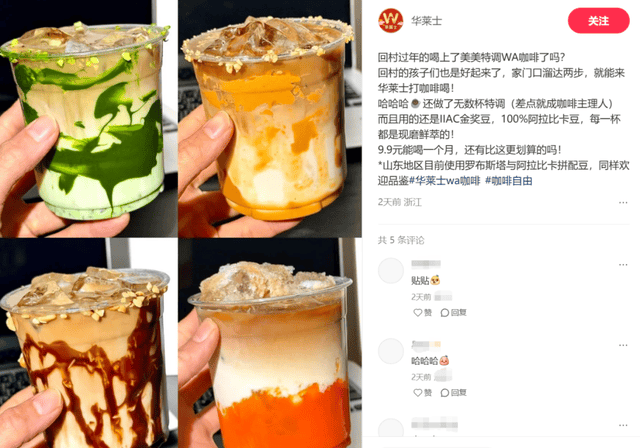 2024年底,库迪宣布与华莱士进行合作,在华莱士门店内设立“店中店”。一年过去,库迪从9.9价位撤退,华莱士却确认了低价咖啡的消费场景,成功偷家:华莱士推出WA咖啡,宣称9.9元包月,单杯最低不到五分钱。月卡要求消费者在门店附近下单后到店自提,不仅是为了低价将人流引至线下进行转化消费,也是为了进一步强化自己在低价区间的统治力,覆盖这个市场所有可能的消费需求。