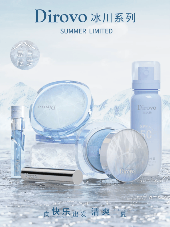 这与其他品牌只换礼盒包装和赠品的做法拉开了距离:毕竟,礼盒可能不会长期保存,但一个三花猫气垫却是会实打实地在消费者手心里停留上几个月,带给她们情绪上的治愈。而冰川系列的独特色调和纹理,则直接从感官上传递清凉的视觉情绪。对品牌来说,每一次联名和主题更新,都是一次和用户见面的珍贵机会。