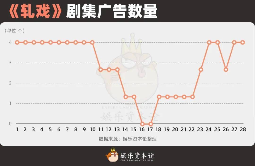 除了大火艺人,上升期演员的招商潜力也不容小觑,除此之外,广告商会观望剧集市场表现的情况,多次出现加广现象。1月份播出的陈星旭、卢昱晓主演的《轧戏》由艺人自带天猫、趣多多等广告,在剧集已播出2/3的前提下,广告数量又有所增加。刘宇宁《玫瑰丛生》也凭借个人商务资源在开启超点后给剧集带来了4广,达到全集有广率。