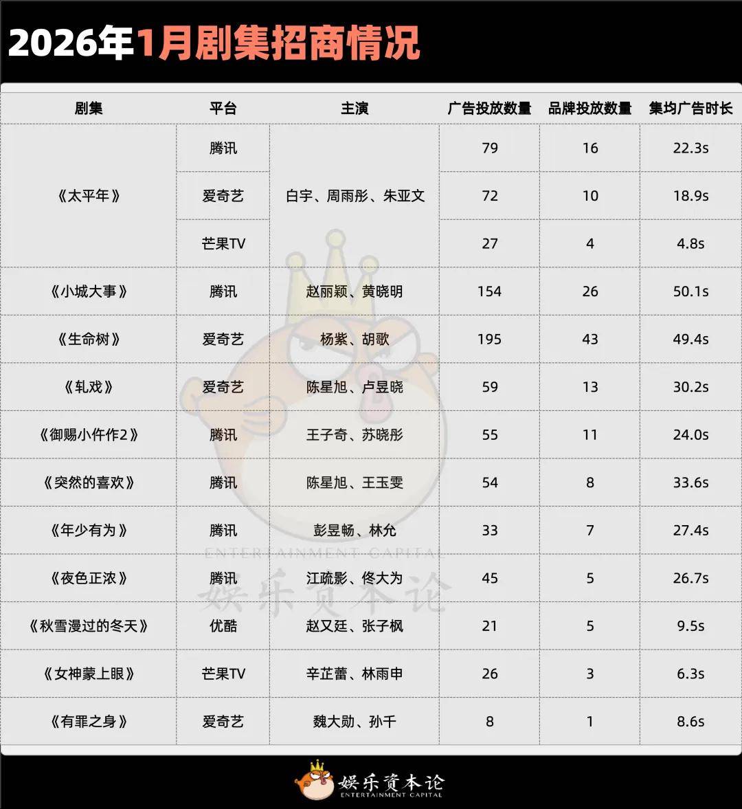 谁能想到,2026年第一季度的剧集市场,招商战场比剧本身还热闹?有的剧集靠艺人流量自带品牌加持,有的剧集靠长尾效应持续吸广。从古装大剧到垂类小剧,从国民艺人到流量演员,Q1的剧集商务,暗藏品牌投放的新逻辑和市场的新走向。