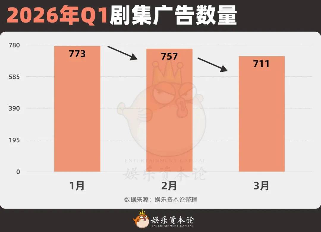 从一月到三月,Q1剧集商务投放呈现出显著的下降趋势,尤其在广告数量上,变化尤为明显,这种逐月递减的态势,清晰反映出开年剧集市场的热度波动与广告主的投放策略调整。