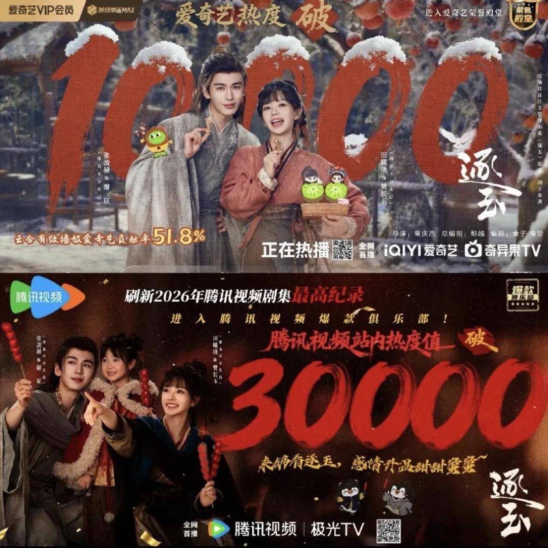 剧集、综艺、商务三手齐抓的演员白鹿更是创造了个人招商纪录,自带的安慕希、绿箭、思念、未可等品牌商务也为剧集《唐宫奇案之青雾风鸣》提供商务加持,#白鹿第8部全集有广剧集 的热搜,更印证了其商业价值的稳定性,能吸引品牌持续加广,展现出极强的长尾招商能力。Q1大热剧《逐玉》凭借流量艺人张凌赫、田曦薇以及大热导演曾庆杰的制作班底,一开播热度就涨速惊人,成为第一部双平台联播双双破万剧,在剧集播出期间不断吸引品牌加广。