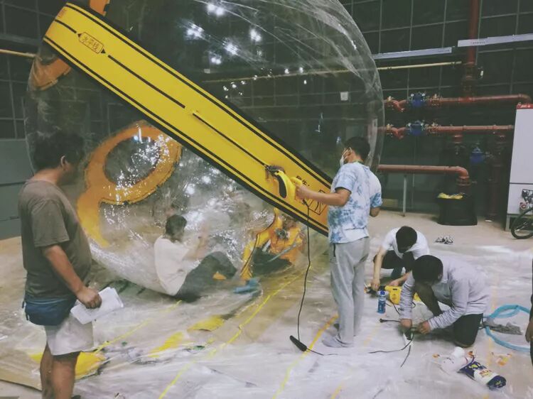 这个如同哆啦A梦口袋法宝的气囊球构成了这部科幻电影最具想象力的一面。但外界不知道的是,为了制作这个气囊球,从内部拉线到现在的充气版,物理特效团队Studio MDI前后设计过五个版本,中途还因为条件简陋,工作人员进入气囊球提前调试时,密闭的气囊球突然打不开,差点发生意外。