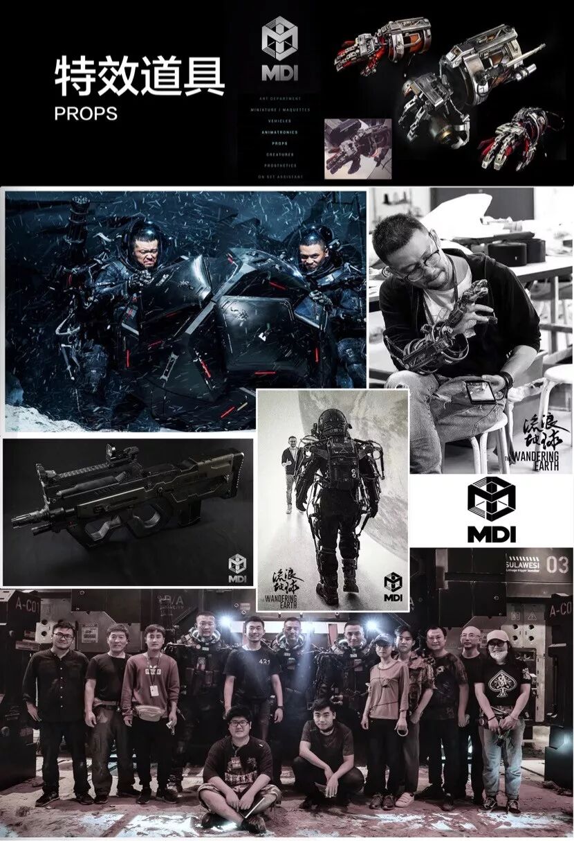 在《流浪地球》当中,Studio MDI历时近两年制作了数百件像气囊球、步枪、火石、地下城轨道车、休眠仓、座椅之类的特殊道具,还包括宇航服、指骨骼等特殊服装,涉及30个大类。