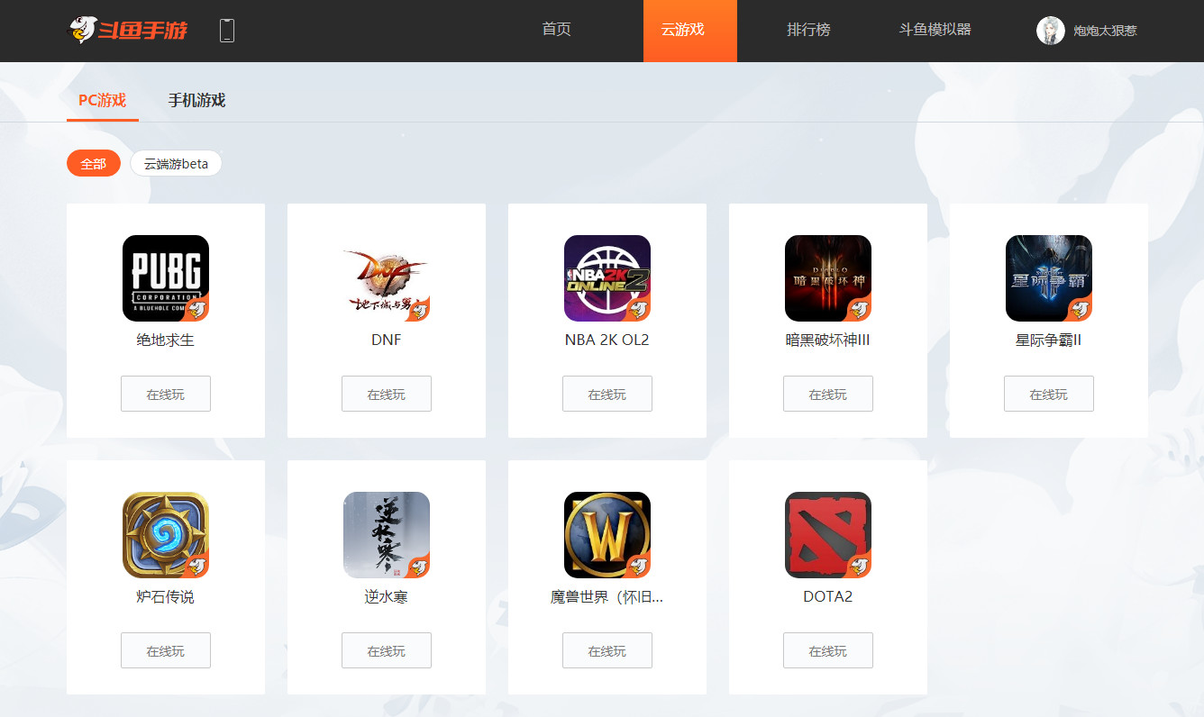 不久前,游戏直播平台斗鱼上线了自己的云游戏平台,并上架了数十款手游、端游,无需下载,玩家即可斗鱼上玩到《DOTA2》、《魔兽世界》等端游,以及《王者荣耀》、《和平精英》等手游。