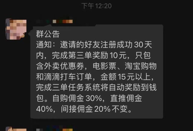 在小杰看来,这种模式主要靠发展“下线”赚钱,“上层可以躺着赚钱,而下层需要想办法做推广,只有别人用你的链接点外卖,你才能赚钱,赚到的佣金还要被上级层层分走,到手就不剩多少了。”