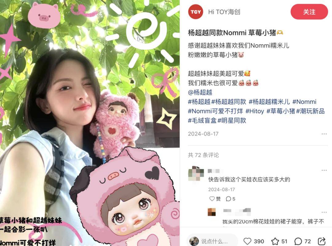 从短期声量看,Nommi糯米儿借助明星效应实现了“潮流破圈”,在五个月内创下破亿销量,并被董事长叶国富寄予厚望。但从本质看,这种策略更像是一场流量的豪赌。明星热度来得快,去得也快,一旦营销投入减弱,IP自身的生命力能否持续仍是未知数。