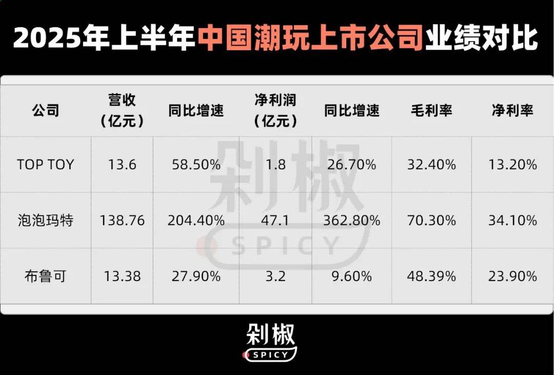 毋庸置疑,泡泡玛特是TOP TOY的最强竞争对手。招股书显示,2025年上半年,TOP TOY营收达13.60亿元,同比增速高达58.5%,展现出了飞快的增长潜力。然而,与行业龙头泡泡玛特(营收138.76亿元)相比,其营收体量仍有较大差距。