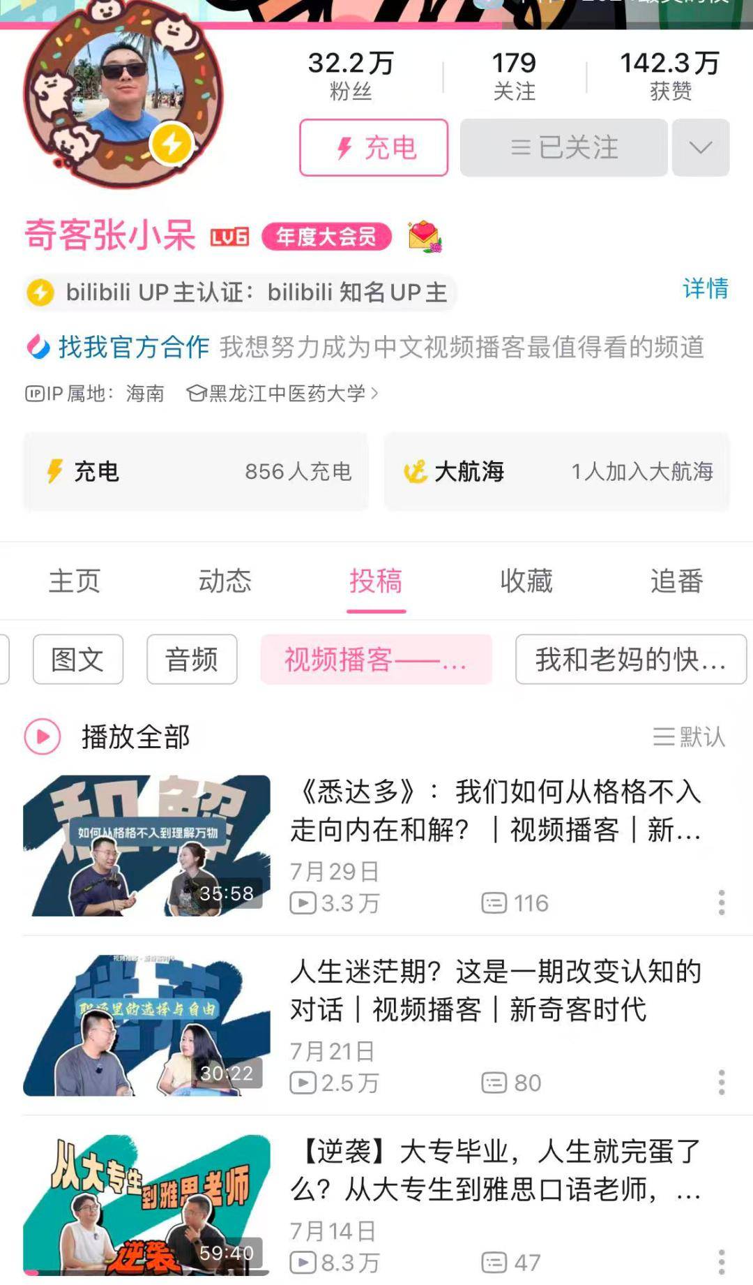 这些不同赛道的播客,共同构成了B站视频播客的多元生态。它不像传统播客那样局限于更精英视角的话题,也不只有罗永浩鲁豫这样的明星才能支撑。