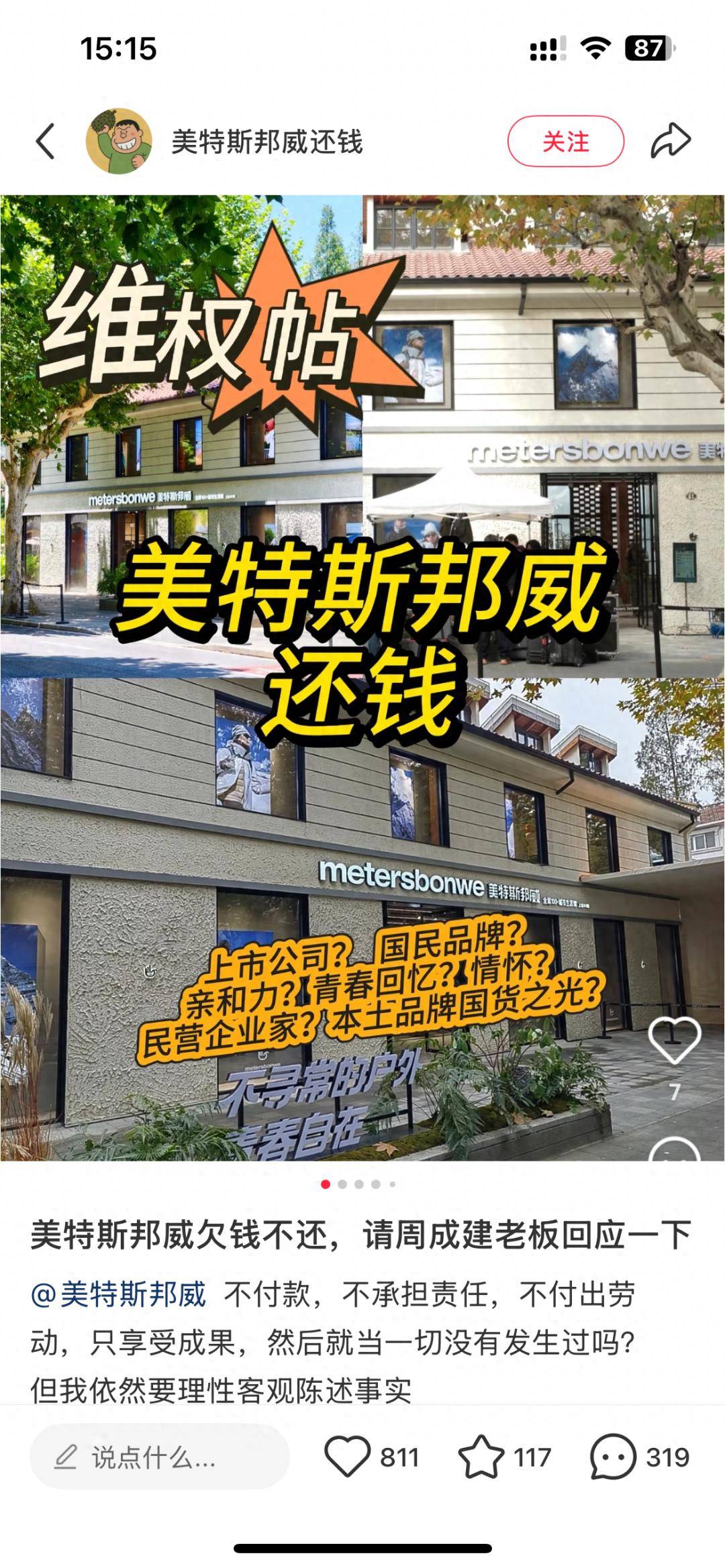 目前,该公司也在小红书上发声,并@美特斯邦威官方号。