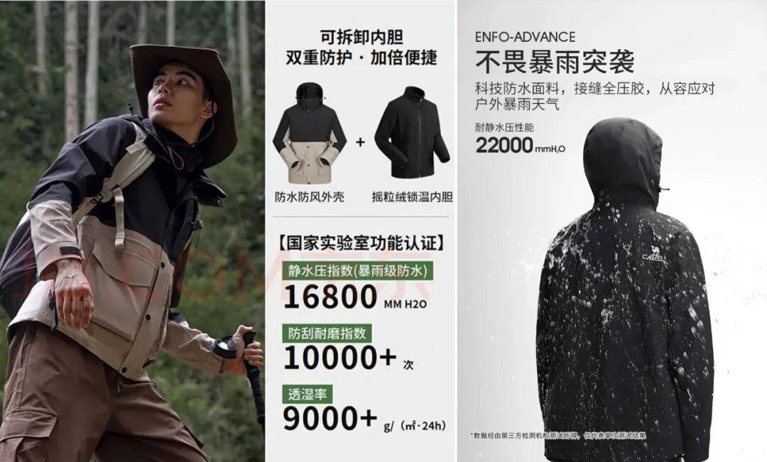 从技术标注上看,“华夏之壳”会反复强调三防面料、防风、防水、防污,在部分宣传里还把静水压防水指数、透湿能力拉出来讲,结论只有一句——“周末徒步、露营完全够用。”