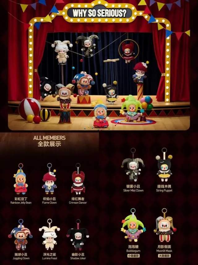 仔细观察泡泡玛特的新品系列也可以发现,它正在试图用“IP集群效应”为新的潜力IP完成明星资源过渡。以9月份推出的万圣节“WHY SO SERIOUS”系列搪胶为例,该系列盲盒中既有Molly、Dimoo、Labubu等成熟明星IP,又有星星人、Hacipupu等新IP面孔。其中,星星人“彩虹豆丁”和Labubu“抛球小丑”成为了两大热门款,而星星人IP还被做成了“泡泡糖”隐藏款,与Labubu“月影假面”形成隐藏款组合。泡泡玛特内部IP之间的联动,间接完成了新老IP之间的IP流量池交融。