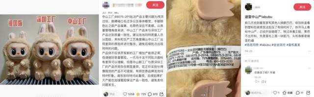 有消费者表示,这批品控饱受诟病的四代Labubu,多数产自广东中山厂,亦有不少人发出了中山工厂的避雷贴。