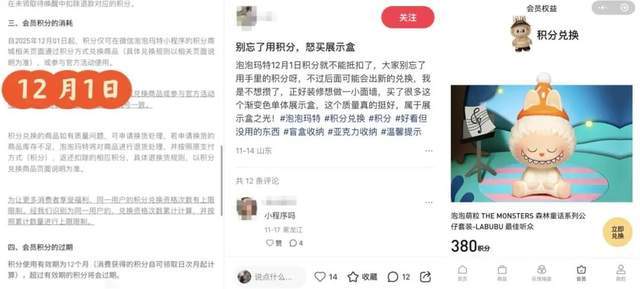 更有细心消费者发现,泡泡玛特的积分兑换现金的规则将在12月起取消,届时积分仅可以在微信小程序的积分商城兑换部分商品。这一规则的取消,在一定程度上打击了黄牛的积极性,新规则下黄牛再无法通过积分套利机制来减少亏损。