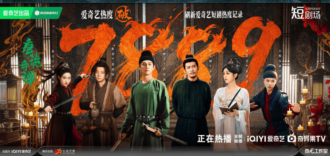 郭世民独立执导的横屏中剧《唐诡奇谭》,在爱奇艺站内热度值已接近8000,超过不少长剧。长信传媒的另外两位导演关达和商尔飞又分别执导了竖屏短剧《唐诡奇谭之长安县尉》与《唐诡奇谭之九重楼》,刷新爱奇艺微剧热度记录之余,分账效果同样很好。