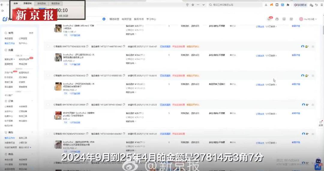 要理清这一事件的根源,或许还要追溯到不久前新京报报道的一起诈骗案:一服装店店主发视频称遭到山东烟台一顾客刘女士诈骗,她称对方半年内利用多个账号下单,调包为低货值商品并进行退款,共计225单。