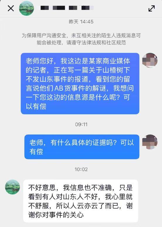 回到导致山楂树下事件爆发的截图,消费者在上述前提下询问客服,得到了“不发货”的回答。这个回复被视为山楂树下站队地域歧视的商家一方,背刺山东消费者的行为。