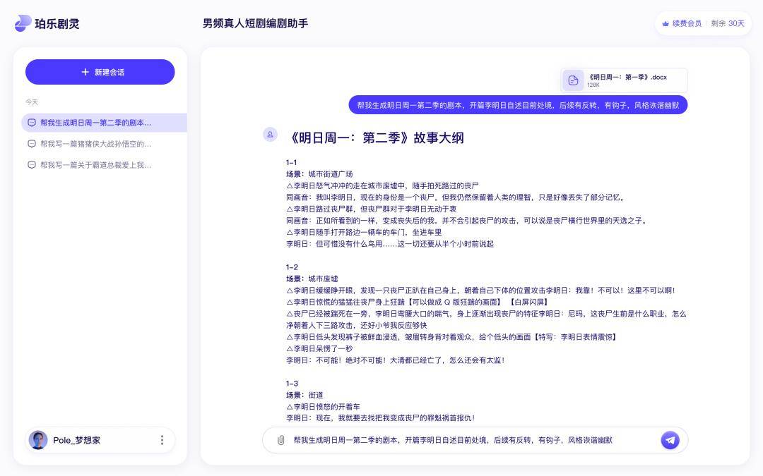杨晟:我们原理是多模型组合策略,结合垂类场景数据与专业知识策略,构成专业的编剧助手。现在很多写作软件其实是基于通识性知识实现的剧作生成,对于专业剧本的认知深度不足。我们的底模针对不同的品类,做了针对性的策略同时,在生成剧本的同时考虑到了合规性、商业化结点、爽点节奏等专业性极强的因素,生成的剧本符合目标人群口味的同时,也更容易实现后续开发。