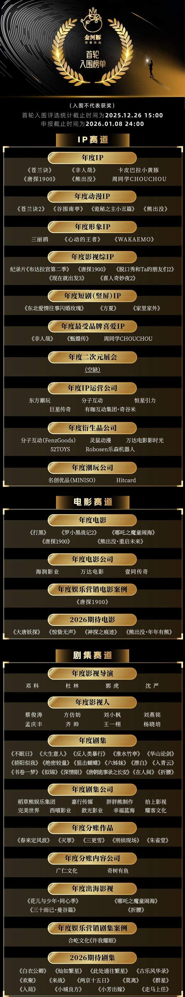 最终获选名单将于2026年1月20日晚的金河豚盛典重磅揭晓,敬请期待!