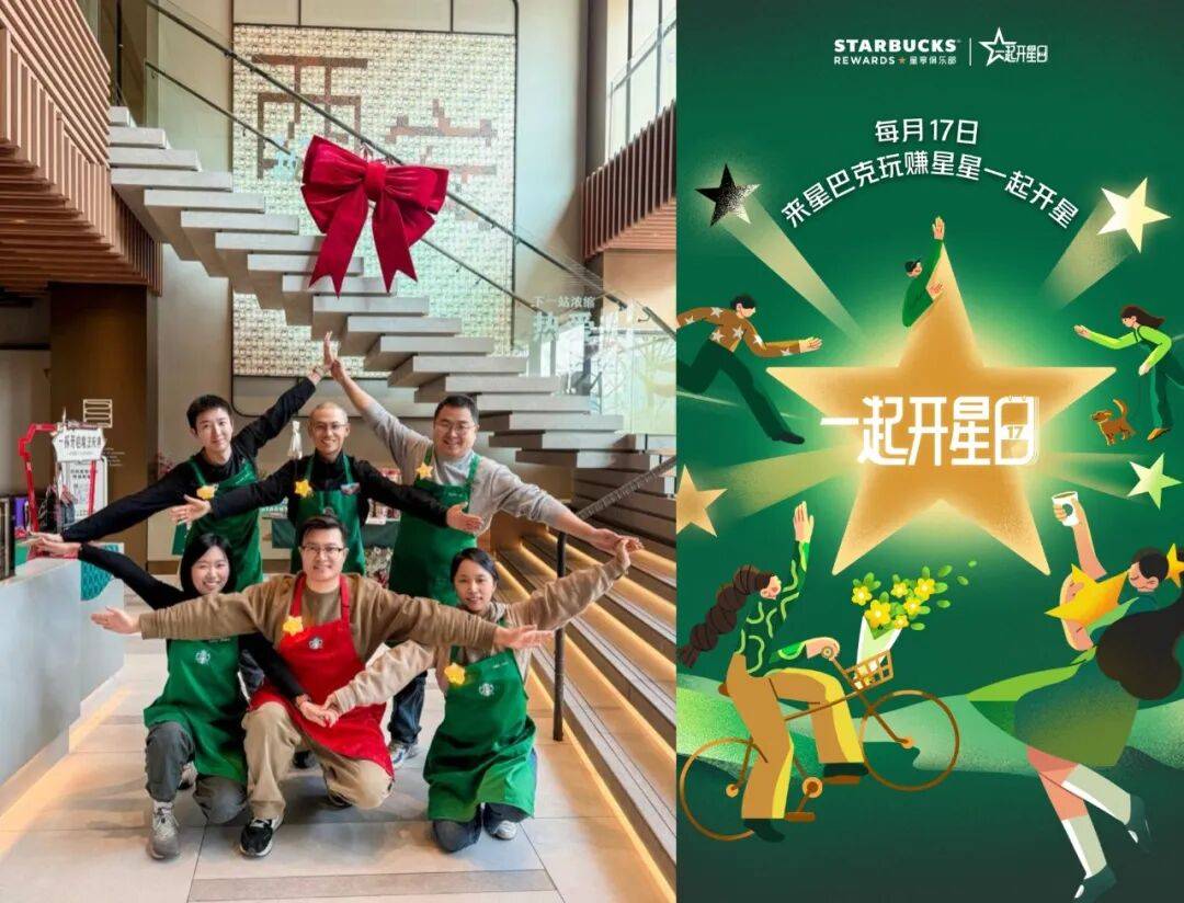 近期,星巴克的会员体系还在不停出新。星巴克将每月17日打造成【一起开星日】,推出开星合拍、开星膨胀、开星市集、开星竞拍4大玩法。让会员在这一天,不仅可以积累更多好礼星星,更能享受丰富的星星兑换权益。相当于星巴克为会员打造了专属的“品牌福利日”。