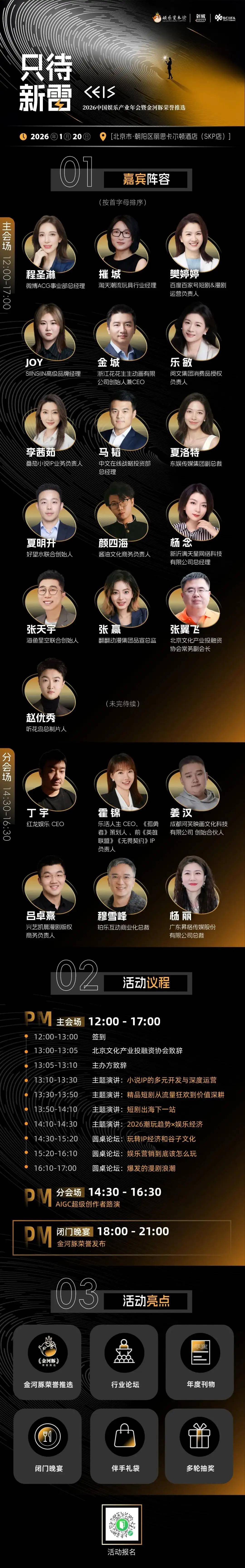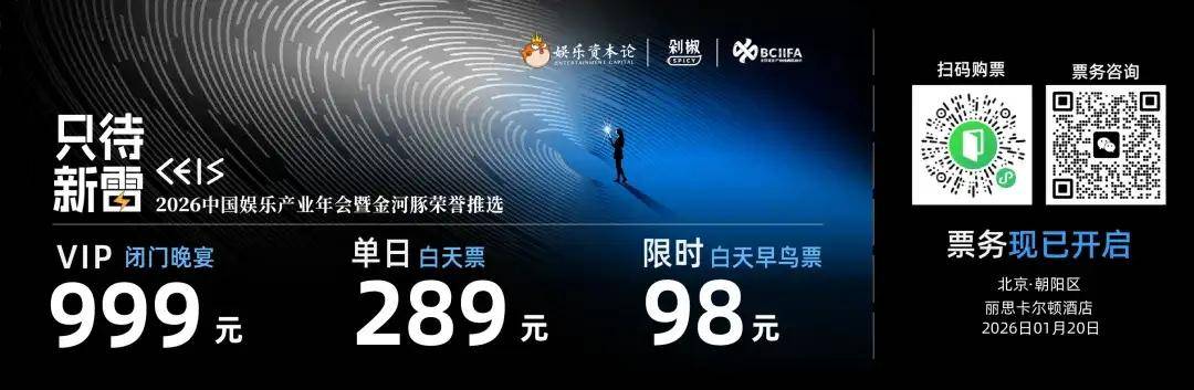 正如那句古诗词:“千红万紫安排著,只待新雷第一声。”下周二(1月20日),娱乐资本论每年年底的行业大会——CEIS 2026中国娱乐产业年会暨金河豚荣誉推选即将在北京丽思卡尔顿酒店落地。